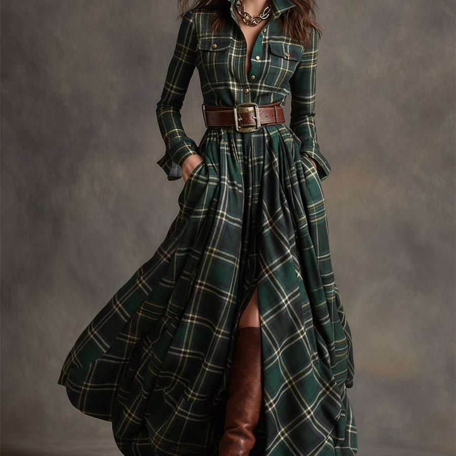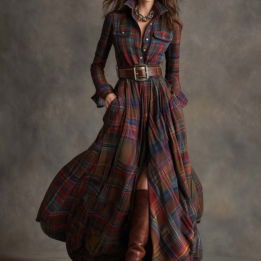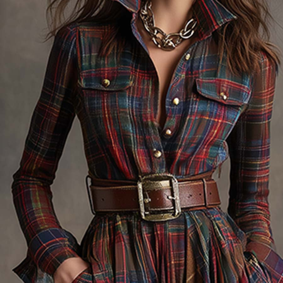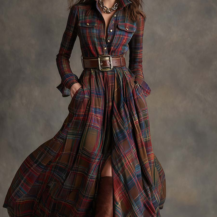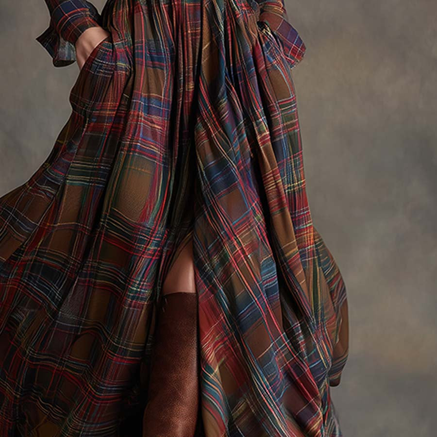 Ta sukienka emanuje stylem vintage'owym z charakterystycznym urokiem. Delikatny kołnierzyk i czerwonobrązowa kratka sprytnie połączone vintage'owe elementy z dyskretnym akcentem. Ta zwiewna sukienka jest elegancka i szykowna, połączenie klasycznego stylu vintage z etnicznymi efektami, idealne na każde użycie.