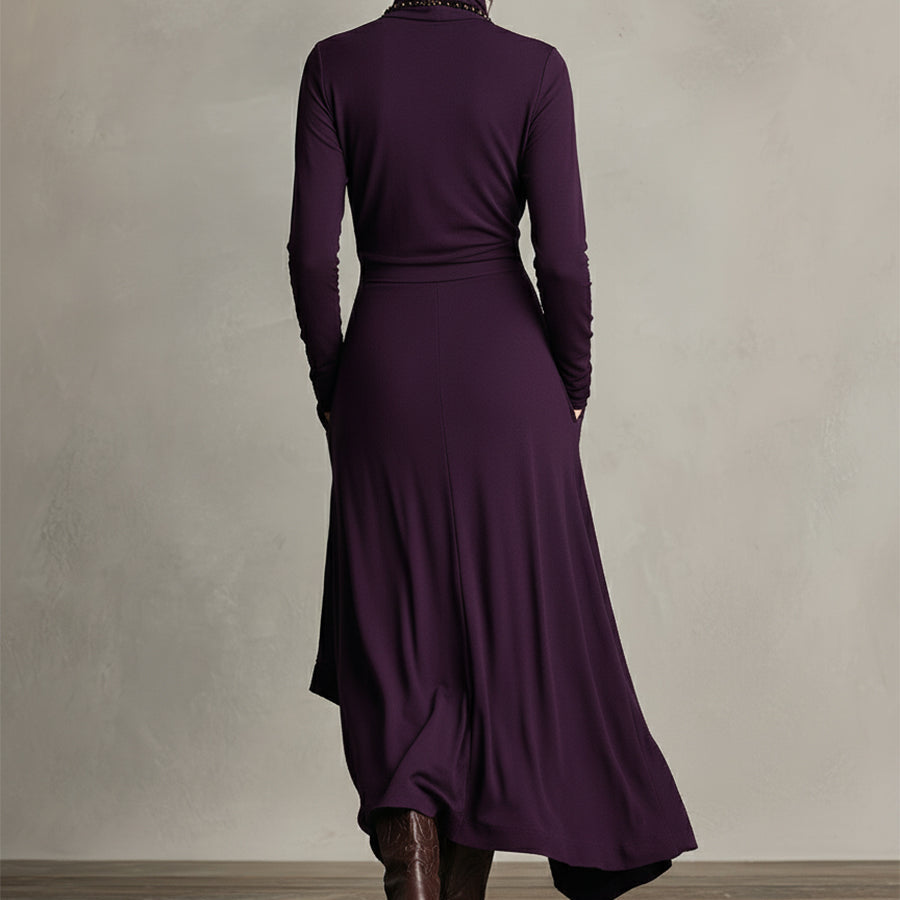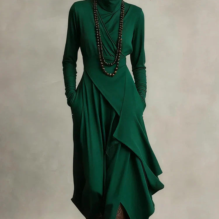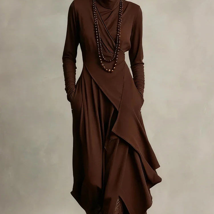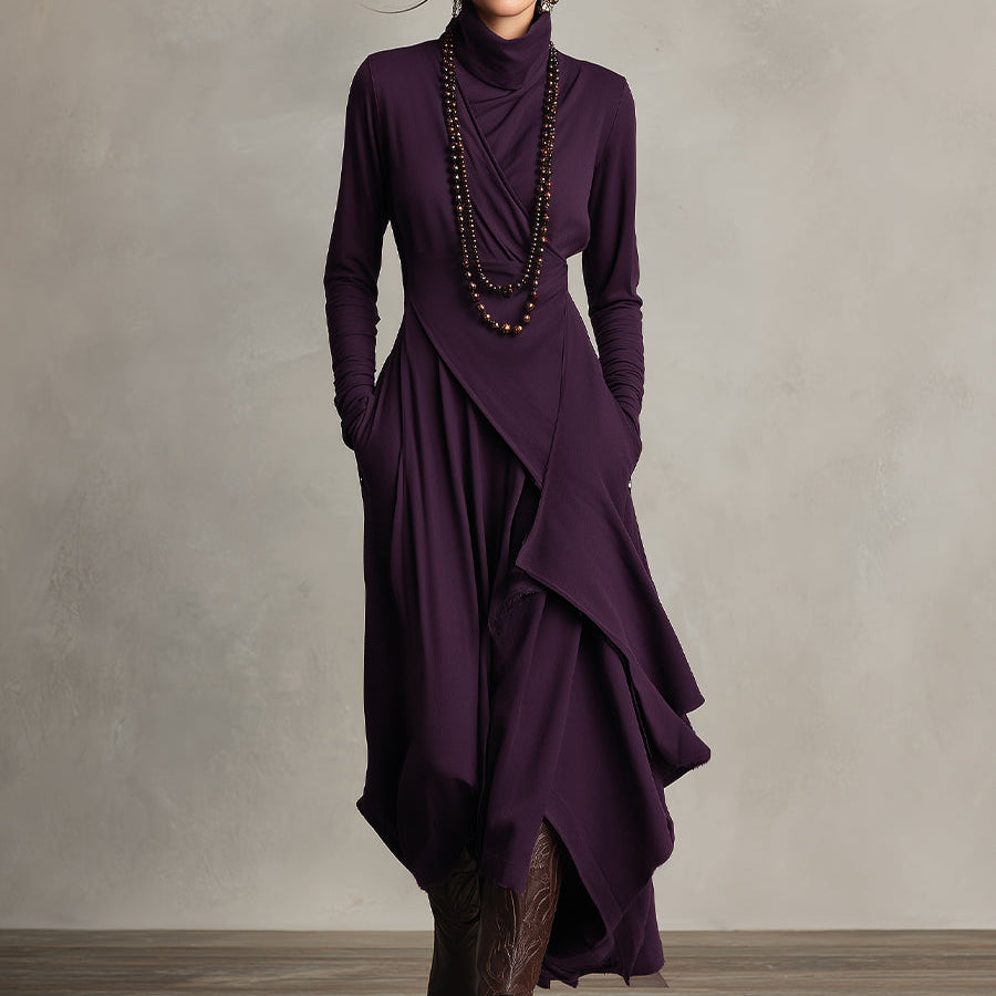 Natalia | Asymetryczna dzianinowa sukienka maxi z golfem