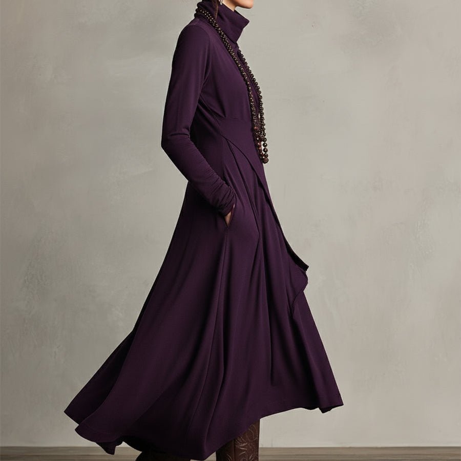 Ta sukienka maxi zachwyca swoim asymetrycznym drapowaniem i dopasowaniem, przyjemną w dotyku dzianiną. Golf rozszerzony klasy i ciepła, luźniejszy krój pięknie układa się na sylwetce, wygodny i wygodny wygląd. Idealna na co dzień, do pracy i na wieczorne wyjścia.