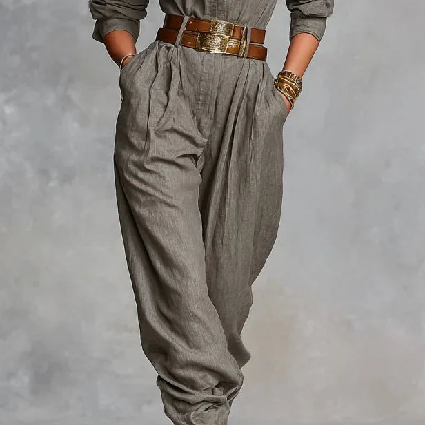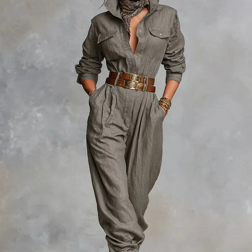 Magda | Bawełniano-lnianie kombinezon z długim rękawem